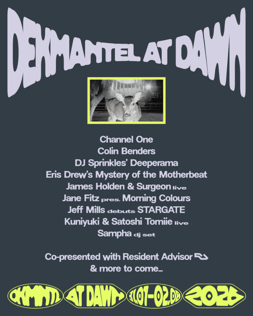 Das Dekmantel kündigt für die kommende Festivalausgabe ein neues Morgen-Programm an. Die Idee hinter „At Dawn”: Das Gelände in Amsterdamse Bos öffnet bereits um 11 Uhr vormittags für Auftritte von James Holden & Surgeon, Jeff Mills oder DJ Sprinkles. Auch Sampha, Jane Fitz, Eris Drew, Channel One, Colin Benders sowie Satoshi Tomiie & Kuniyuki Takahashi stehen früher auf. Durch die zusätzlichen Slots erweitert sich die Gesamtdauer des niederländischen Festivals auf nunmehr 36 Stunden.